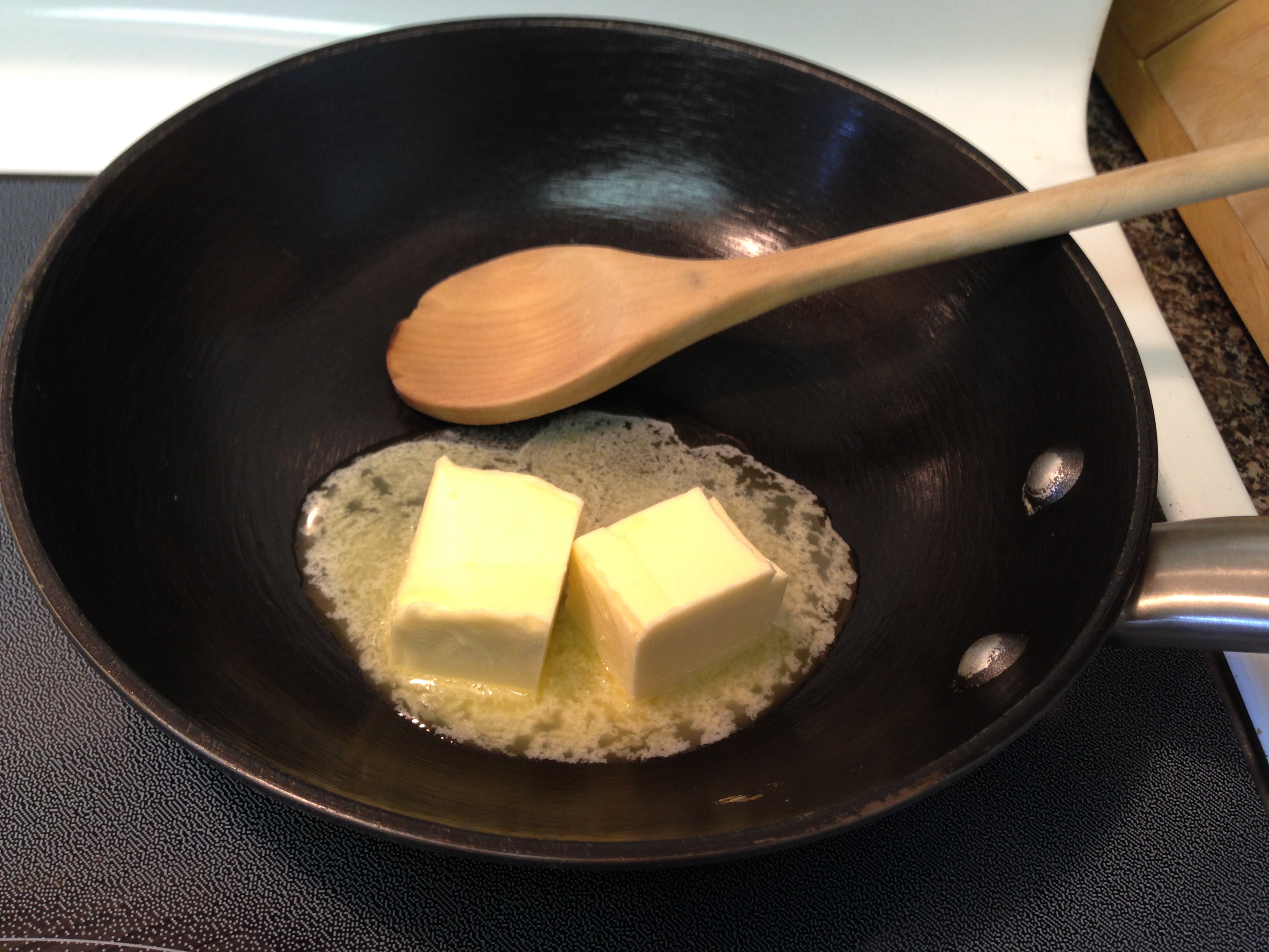 Now you’re going to brown the butter. Do this in a small skillet or pan on low heat. Keep stirring until fragrant and you can see it has become a slight light brown colour. It may take a few minutes (1-3). Don’t take your eyes off it, you don’t want it to burn. I love that buttery smell!
