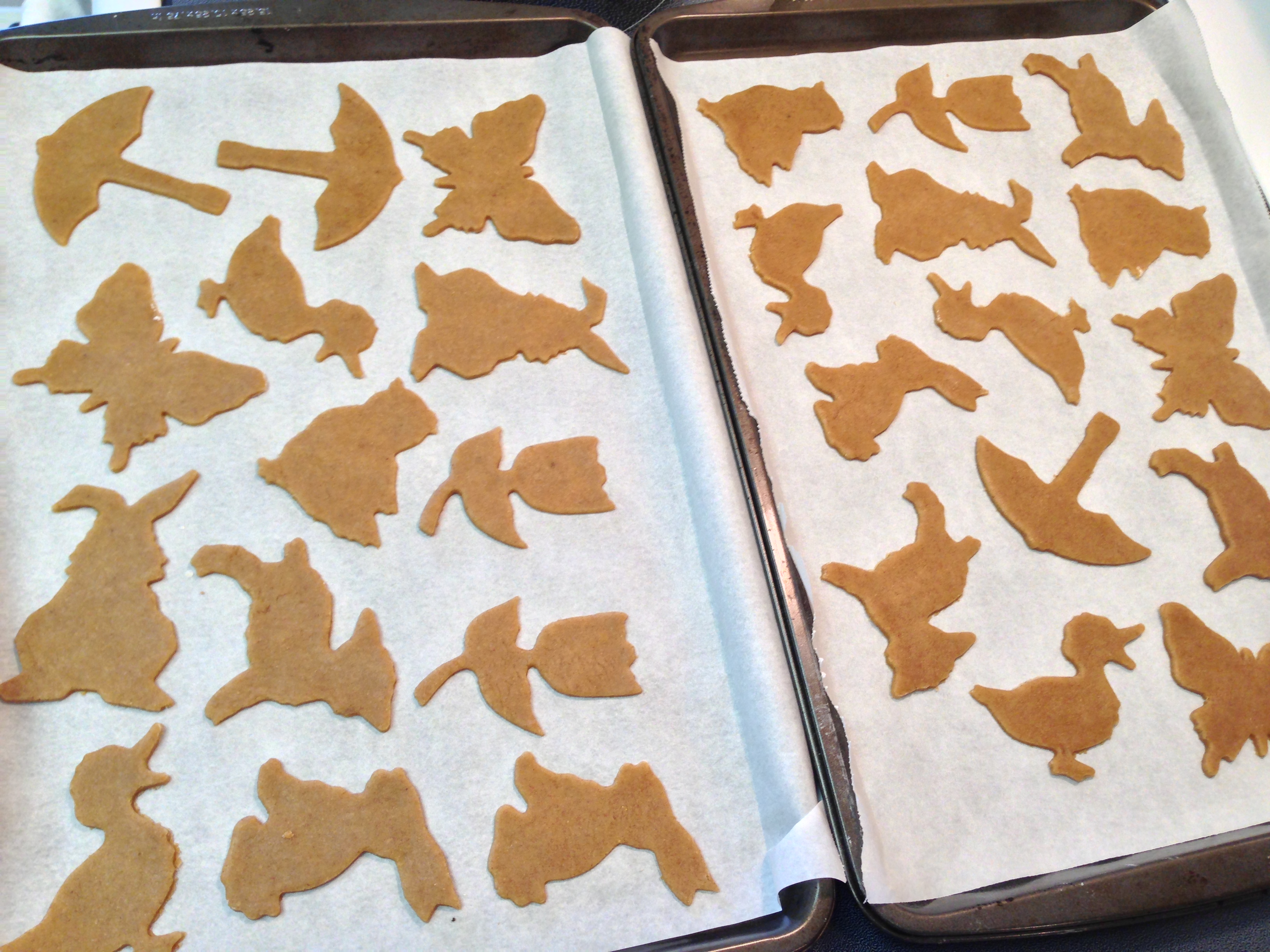 When done refrigerating, preheat your oven to 350 degrees, and remove the dough disc from the fridge. Line two baking sheets with parchment paper. On a lightly floured surface, roll out your dough. I made mine pretty thin. 1/8 of an inch is usually pretty standard.